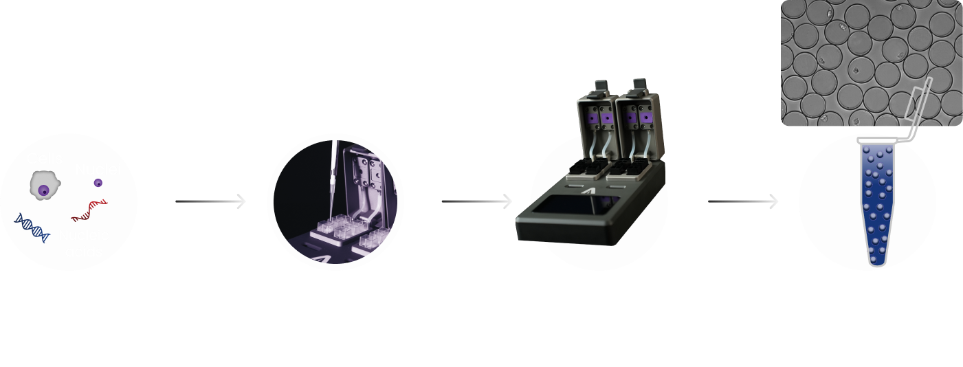 Semi-Permeable Capsules have an aqueous core and sieve-like walls that keep the cells and nucleic acids partitioned inside, while allowing the free flow of the surrounding solution, be it molecular biology reagents, buffers or media.